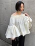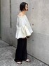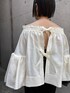 エッグシェル🥚のような優しい色合いのホワイトをブラックで、ちょっぴりスパイシーな雰囲気で合わせました。 トップスは前後どちらで着ても素敵で、リボン側を前にすると全く印象を変えられるので一着で存分に楽しんでいただけます♡