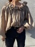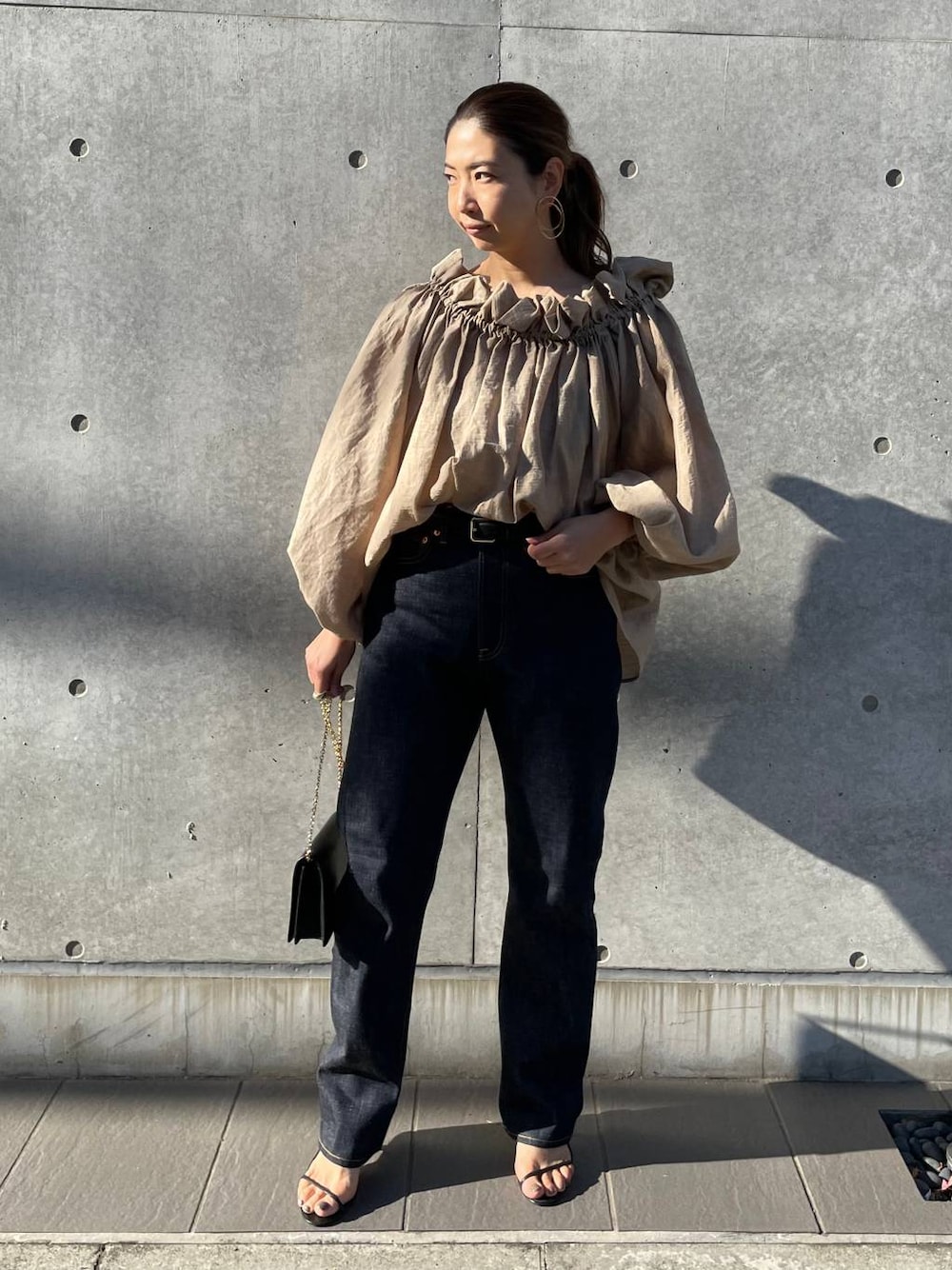 一枚で華やかに、春の気分をあげてくれるオラパブラウス! 襟ぐりが紐で調整出来るので、オフショルダーにも、 少しキュッとして好みのシルエットでの着用が可能です。 リネンレーヨン混素材でサラッとした着心地、ホームケア が可能なのも嬉しいポイント! ゴールドアクセサリーとブラック小物でメリハリプラス、 リジットデニムと合わせてキレイめカジュアルに。