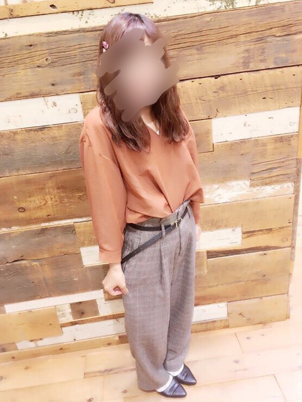 お店でスナップ撮ってもらった時のです! トップスの、 ノーカラーシャツは 襟元がV字に空いてるので デコルテが見えて女性らしさを出してくれます🌹 ボトムスの、 グレンチェックワイドパンツ❤︎ 今年流行りのチェック〜〜(((o(*゚▽゚*)o))) こういうのがお店で履けるなんて💜! とってもとってもお気に入りの コーデなのでポストしました🎶