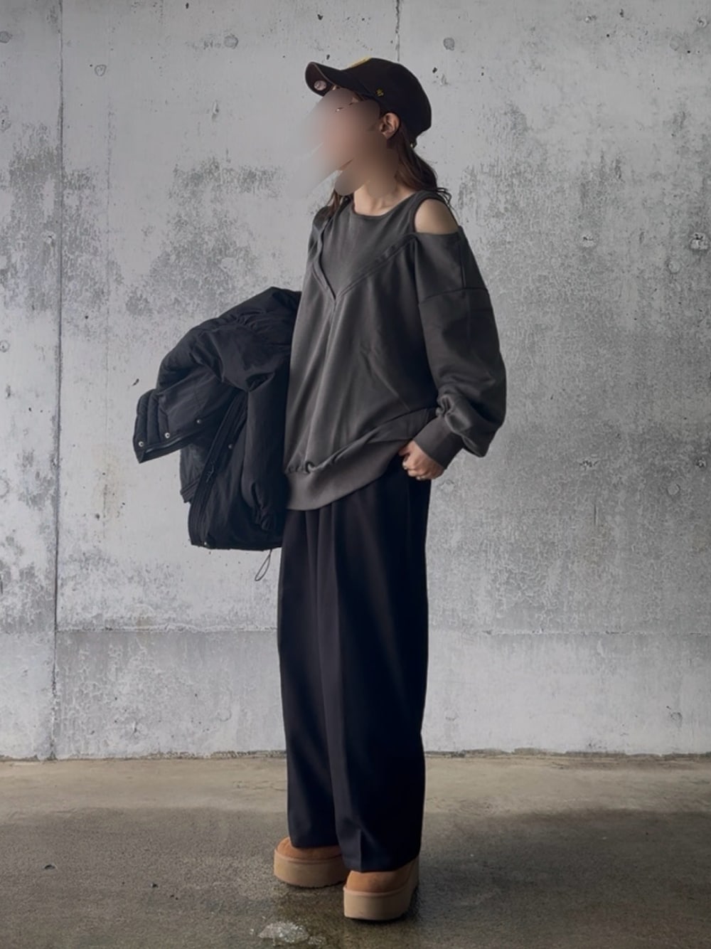 @solleim_official さんの 肩スリットレイヤード風スウェット♡ ヘルシーな肩出しスリット🤭 これくらいだと挑戦もしやすい👍 体型カバーもしてくれるスウェットだよ。