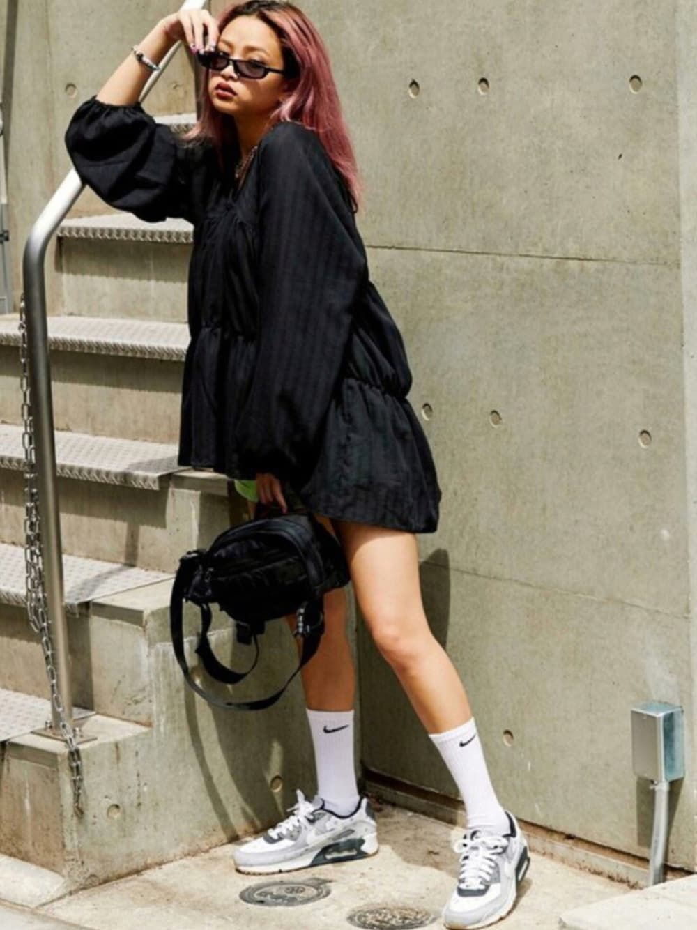 atmos pinkのワンピース「atmos pink Vネック ミニ丈 ワンピース」を使ったコーディネート