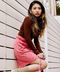 チョコ色のトップスにピンクをちりばめてレディーライクな秋コーデが完成♡