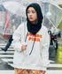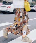 スリットの入った柄スカートをメインにしたコーデ