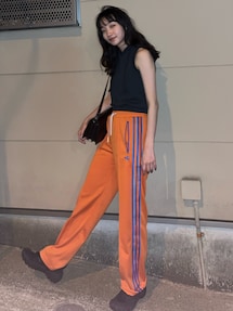 トレンドカラーのオレンジキャミが夏らしいダンサー風コーデ。足元のさりげないカラーソックスがこなれ感抜群!