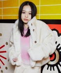 全体をベージュで統一したワントーンコーデ。ミニスカにブーツにふわふわアウターでデートにもぴったりな着こなし♡