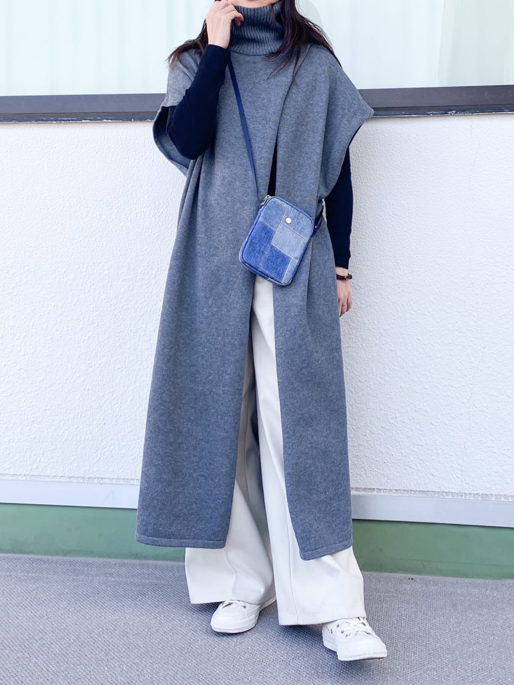 お気に入りのロングニット 白のパンツをあわせるのにハマり中♡