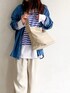 バッグは来月発売予定の russet"Blue Lavel"シリーズ オーバーサイズのシャツが 軽いアウターになるほど暖かくなりました 昼間は暑い! インスタ→1000__okao_north