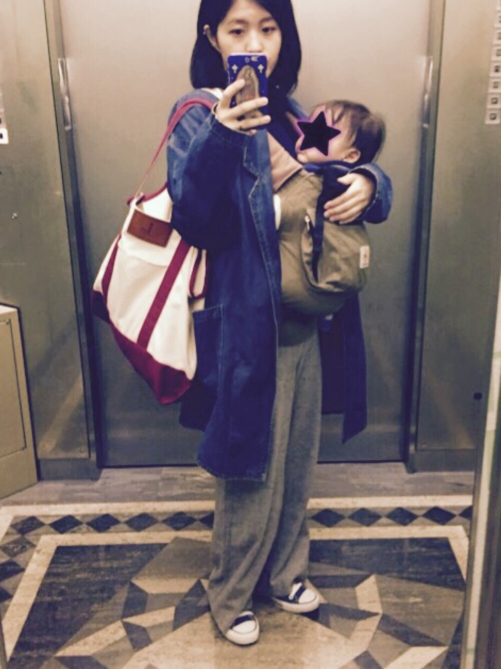 会社に用事しに行く!ついでに息子ちゃん抱っこのままエレベーターでパチリ。 インナー全然見えないけど綺麗な形で着心地抜群! パンツはウール混なんでちょっとチクチクするけど、やっぱ冬のワイドパンツはウールがかわいい! 風が冷たいなー(・ω・)冬来ちゃった感(˙ ૄ˙ )