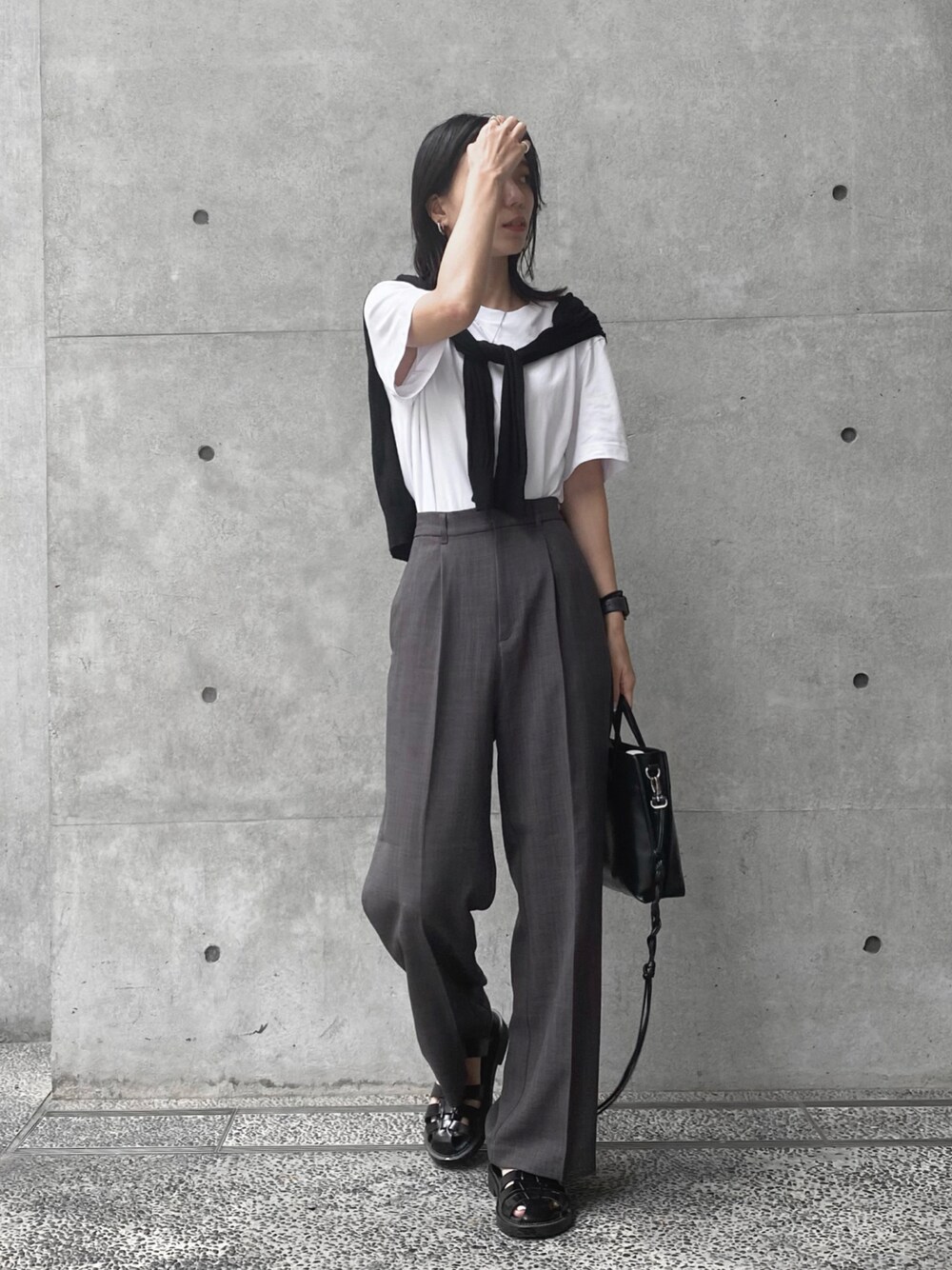 ちょっと前のハンサムコーデ。 普段は黒が多いけど、グレーのパンツをGETしたので いつもよりちょっぴり優しい印象になったらいいなと思います