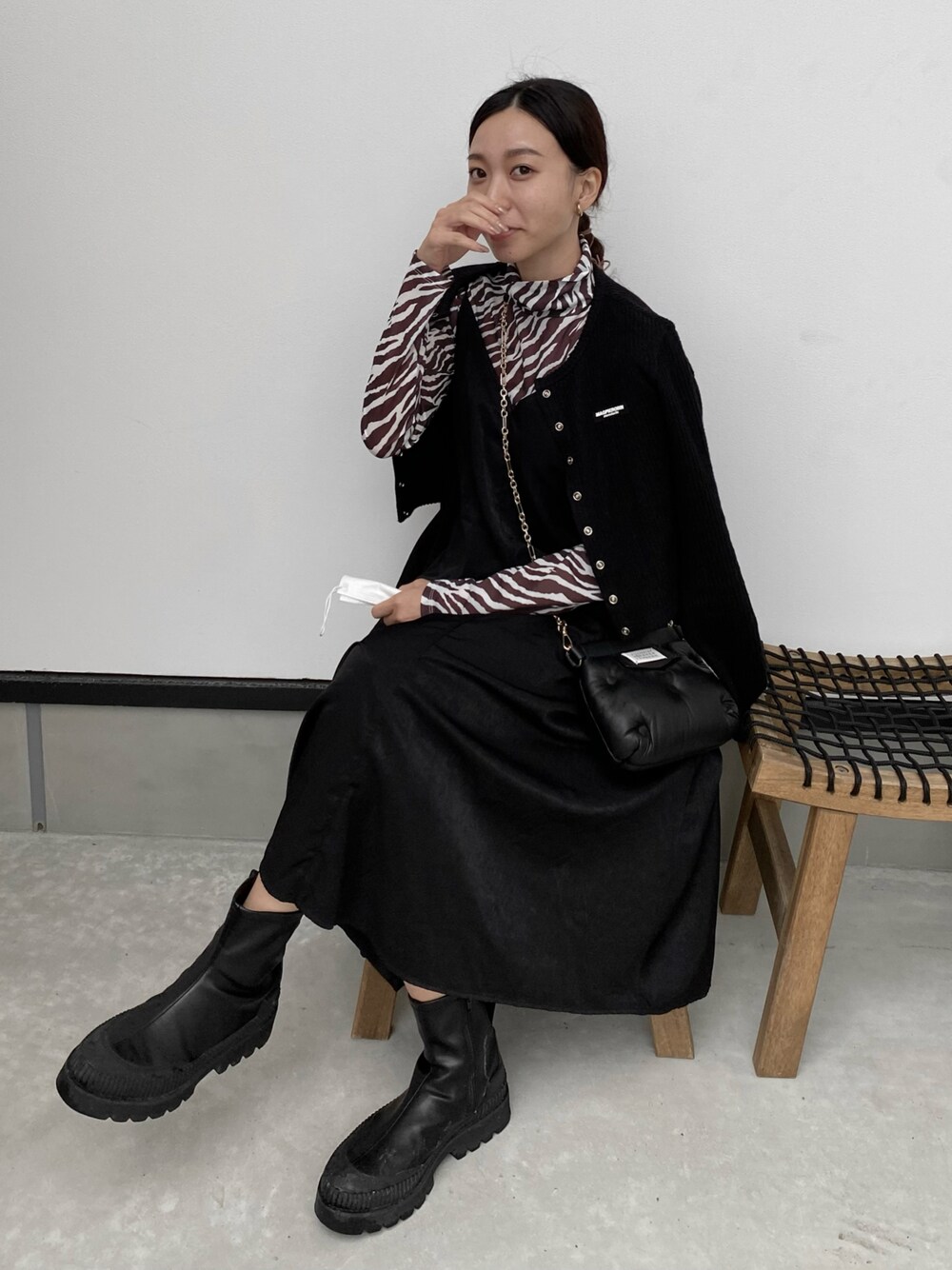 お気に入りのレイヤードコーデ ブラウンのゼブラなインナーが 可愛くてポイント♡
