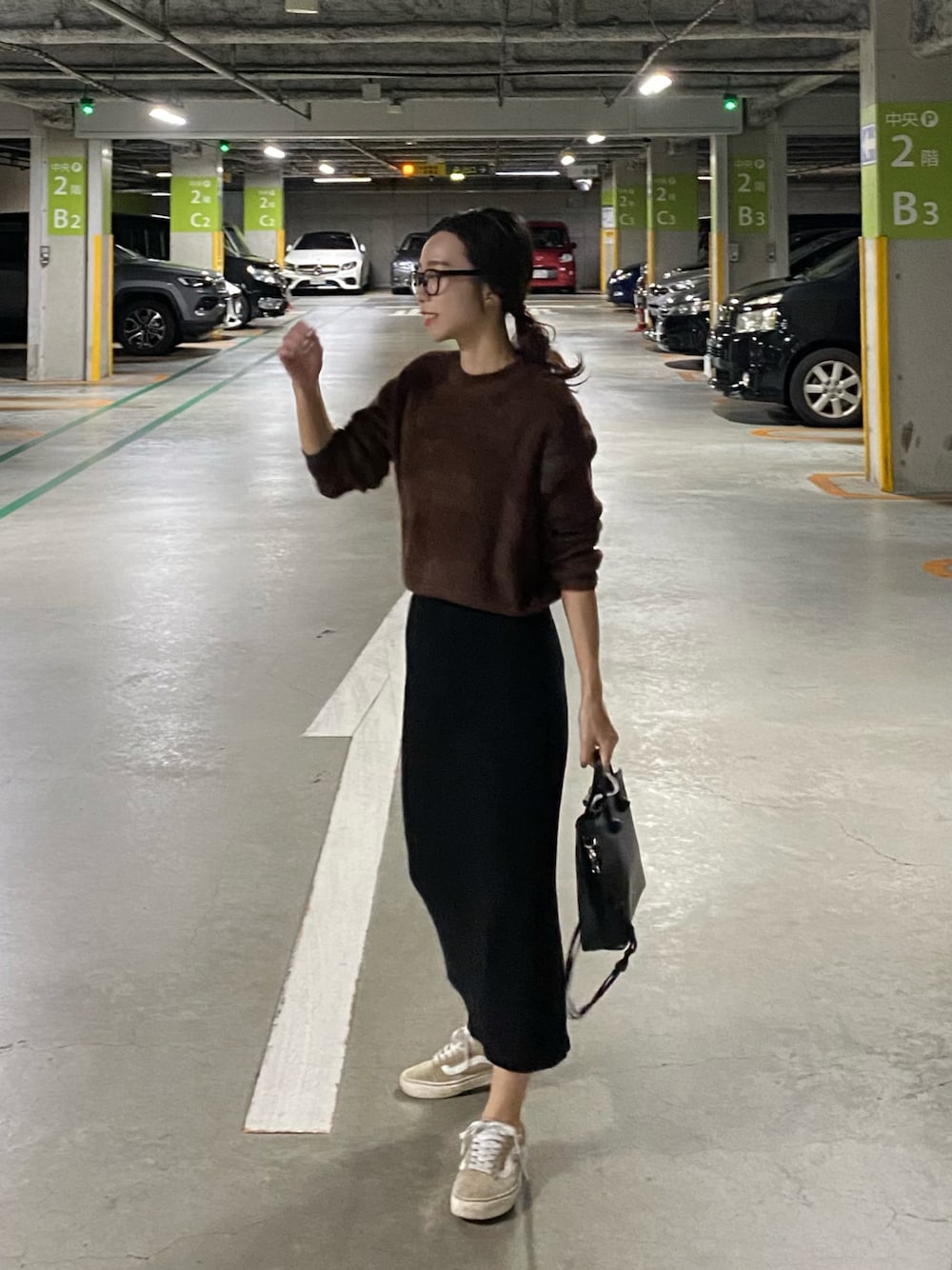 シンプルだけどお気に入りコーデ フェザーモヘヤのニットがふわふわで 大好きなのです♡ インスタもやってます!