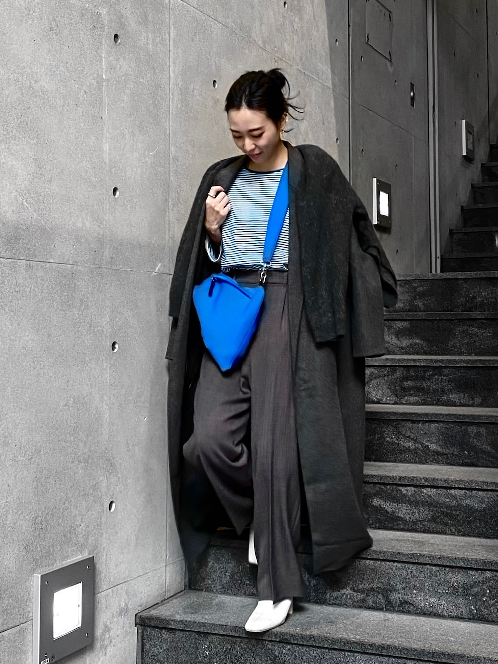 グレーをベースにインナーのボーダーとバッグでblueを合わせた ワントーンコーデの日♡