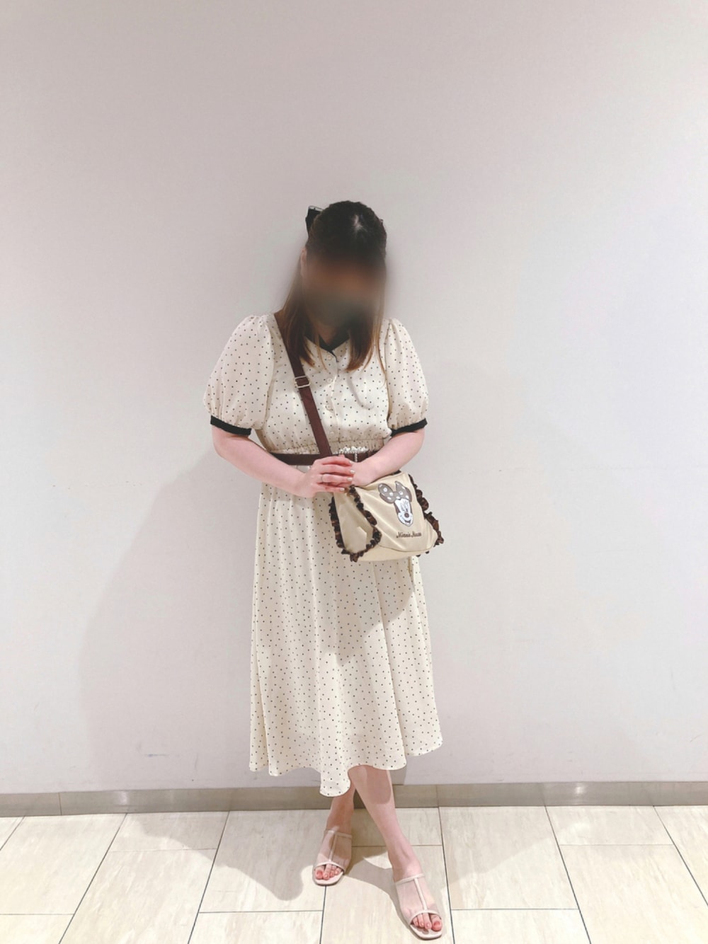 . Areeamでドットコーデ💓 . 着用アイテム ✿ドットロングリボンヘアカフ ✿2人の思い出を刻むドットワンピース ✿ミニー/フリルショルダーバッグ