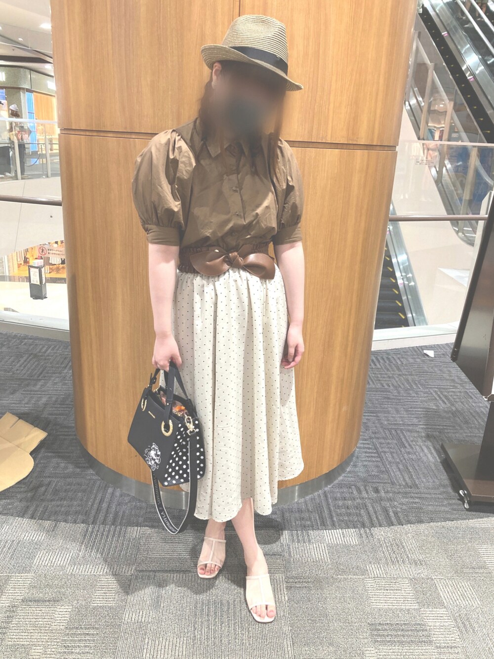 . Areeamでブラウンコーデ💓 . 着用アイテム ✿凛としたおとなのブラウス ✿ビックリボンシャーリングベルト ✿ドット柄スカート