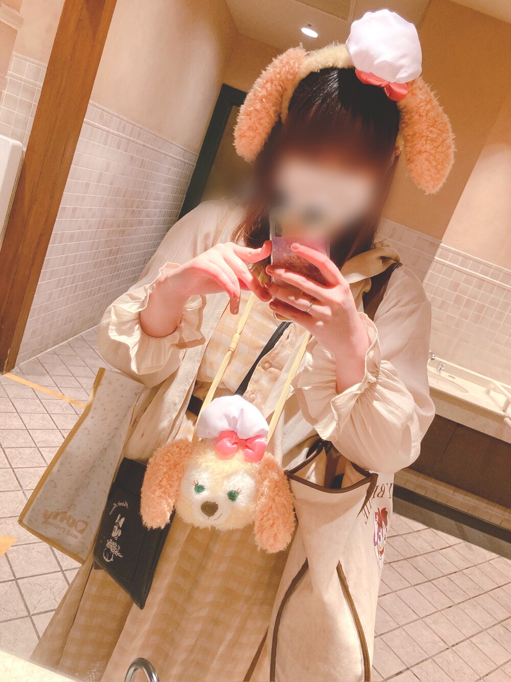 . クッキーアンちゃんコーデ🍪 . 着用アイテム ✿空を抱きしめるチェックワンピース ✿甘く優しいジェラートブラウス ✿ミニー/ポシェット ✿ミニー&デイジー/合皮パイピングトートバッグ