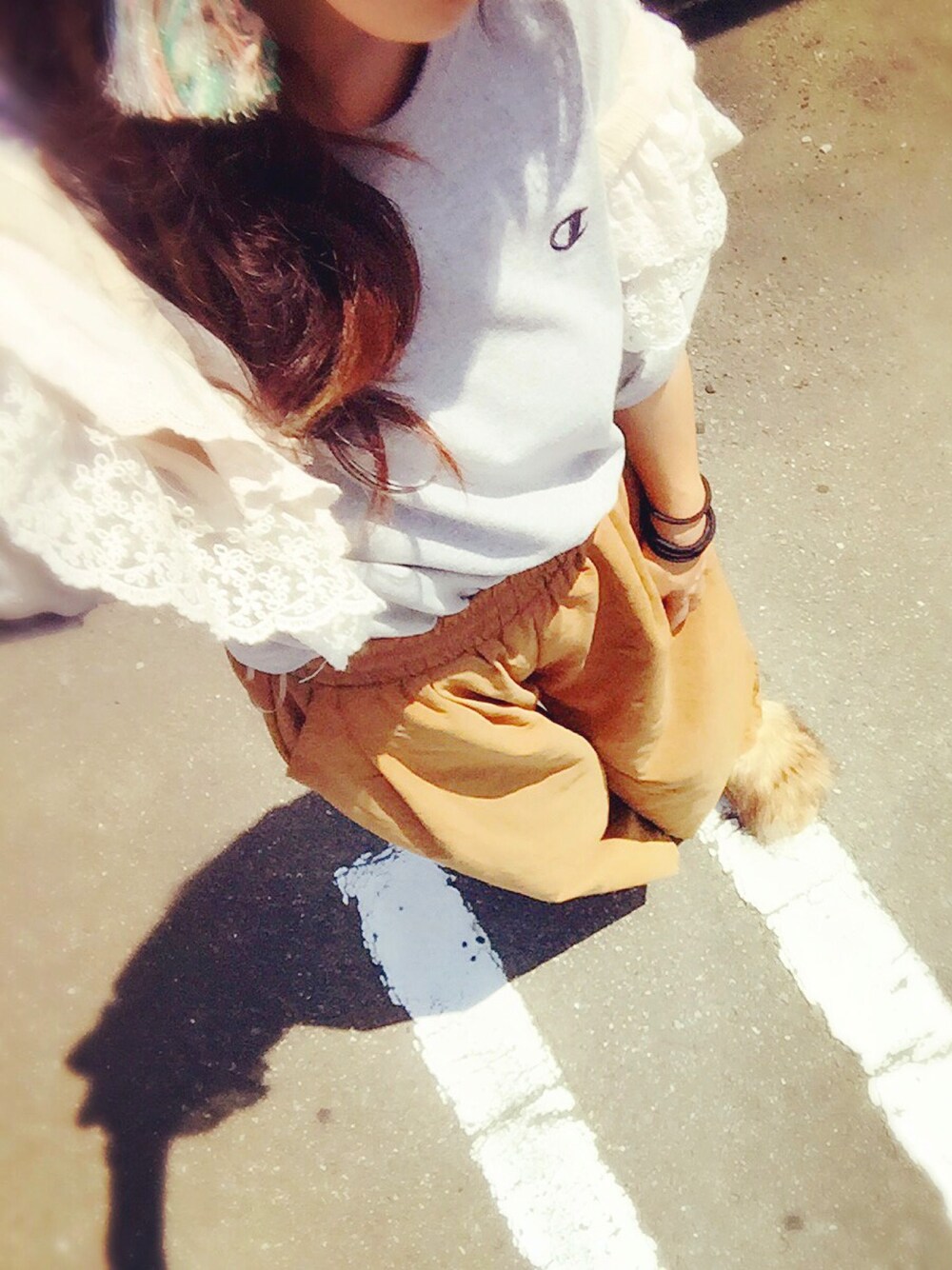Tシャツとファーサンダル、片耳イヤリングみんな主役♡