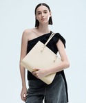 【シューズ】 チューブストラップがかわいい厚底サンダル♡ 10cmヒールで足長効果も抜群! ストラップはとても柔らかい素材なので痛くなりにくく、履き心地◎ サンダルは普段24cmを履いており、試着38でちょうどいいサイズ感でした。 【バッグ】 大人気のA4バッグシリーズから新色登場♫ 白すぎず暗すぎないベージュカラーがどんなコーディネートも馴染みやすく、シルバーの金具が大人かわいいデザインです♡ 通勤や通学コーデにぜひ合わせて見てくださいね