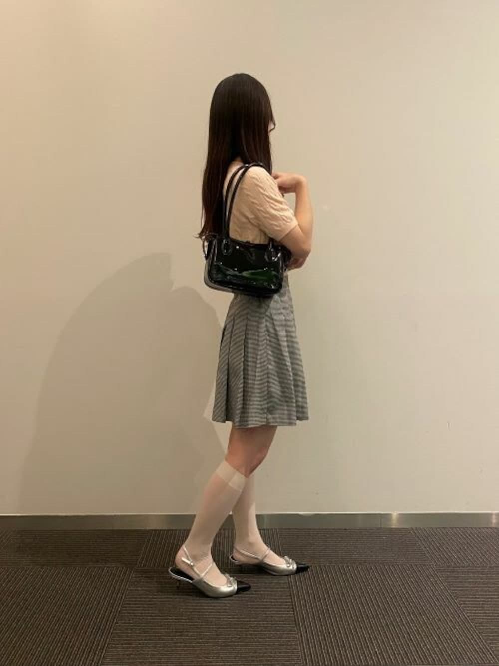 【Bag】 今季トレンドのトップハンドルバッグ! パテントの素材感はコーディネートを一気に高級感に仕上げてくれます♪ さらにエンボスロゴを添えたミニマルなデザインも上品さを演出。 ストラップは体に自然に馴染む絶妙な長さで、デイリー使いしやすいバッグです⭐︎ 【Shoes】 バレエコアコーデに欠かせないリボンモチーフのパンプス登場♡ ヒールの高さは低めで、さらにインソールはもちもちのクッションなので、普段ヒールに慣れてない方もオススメしたいシューズです。 クラシカルスタイルやエレガントスタイルなどのオケージョンにも合わせていただけます。 普段23.5センチで37サイズがぴったりでした。