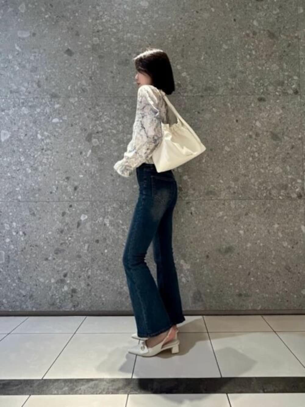 【バッグ】 軽量で収納力抜群なバッグが登場です⭐︎ ストラップは長さ調節が可能なので、厚手のコートでも持っていただけます。 開閉口はマグネットなので開きやすく、内側にはポケットが二つ付いているのも嬉しいポイント! 500mlのペットボトルや折り畳み傘がすっぽり入るので収納力抜群です♪ 【シューズ】 女性らしさと大人らしさを兼ね備えた、ポインテッドトゥパンプスが登場⭐︎ 普段使いしやすいミドルヒールでスタイルアップを叶えつつ、歩きやすさを実現します。 ワイドパンツなど太めのボトムからちらっと見せたり、シアーソックスを合わせたトレンドスタイルもお楽しみいただけます! 24.5/38 の普段通りのサイズでぴったりでした:)