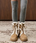 【バッグ】 大人気のミニシャニアのダブルハンドルトートバッグ♩ デイリーに使いやすい小さめサイズで、内ポケットと、ミニポーチ付きも嬉しいポイント♡ お好みでバッグの横幅を変えられて、斜めがけできるストラップもあるのでコーディネートの幅が広がります。 ブラウンのボア素材は肌触りも良く、ふわふわで愛らしい雰囲気でこれからの季節にマストなアイテムです!! 【シューズ】 ふわふわモコモコ♡コーディネートの主役級ブーツ✨️ レースアップデザイン、プラットフォームブーツでスタイルアップが叶います。全体がフォースウェード・フォーファーで包まれているので、寒い日でも温かく可愛くシーズンムード漂います♡私は普段23.0~23.5cmのサイズで着用していますが、36がちょうど良かったです!