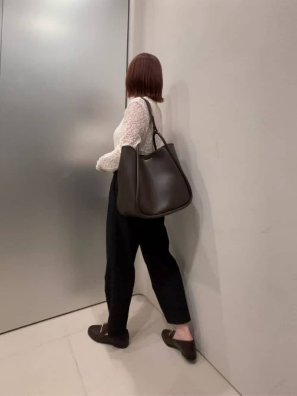 【Bag】 大容量サイズで人気のビッグトート♡ A4サイズは勿論、PCも入ります!ストラップが太いので肩への負担も少なく、重い荷物を入れたい方にオススメです♪ 【Shoes】 ゴールドのモチーフが華やかな一足! お仕事用からお出かけ用までオンオフ問わず使えます♪ 普段通りの36のサイズでぴったりでした♡