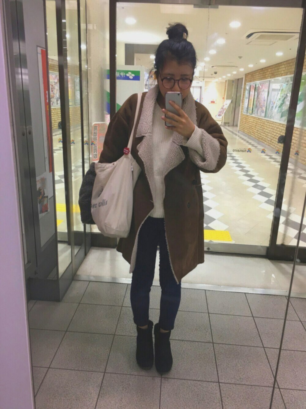 ちゃるのムートンコート「KBF フェイクムートンコート」を使ったコーディネート