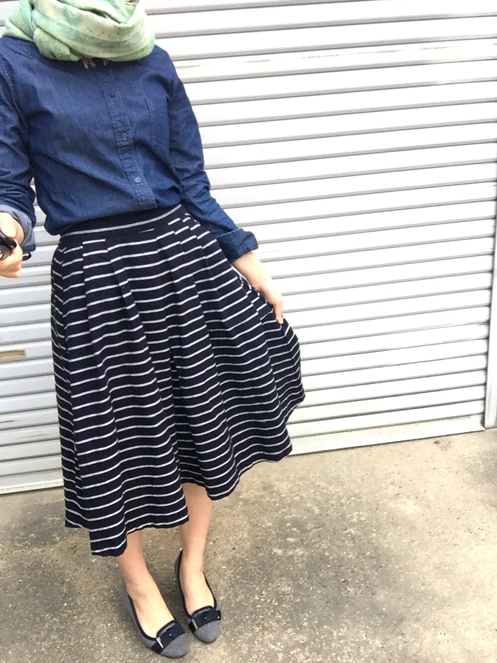 guで見つけたボーダースカート! これはMサイズで膝下丈。 試着して気に入って即購入! ただSサイズでもよかったかなーと笑 このスカートが¥1,490くらいでした。 早くタイツを履かずに着たいです!