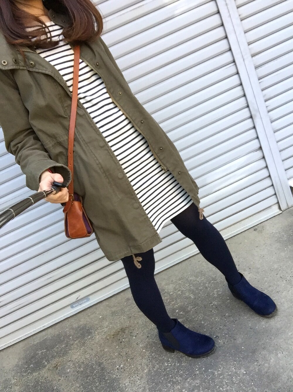 THE 休日リラックスコーデ いつも自撮り棒で撮ってるんですが 毎回撮れなくて、苦戦してます… 棒が見えすぎててすみません。 皆さんがどうやって一人で 上手く撮ってるあるか いつも気になります。
