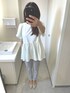 見てくださってありがとうございます😊 トップスは、首元と袖口のレースがかわいくて購入しました!ボトムスは、裾にパールが付いていて上品なのと色味が好きです!