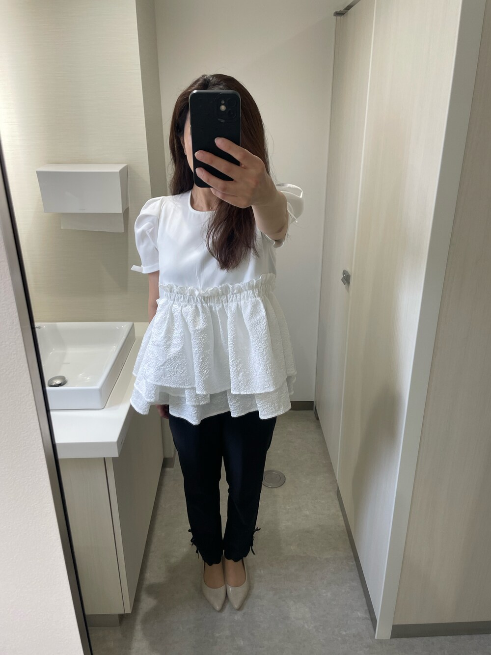 見てくださってありがとうございます♪ ふんわりしたジャガード生地のペプラム部分が気に入ってます🥰