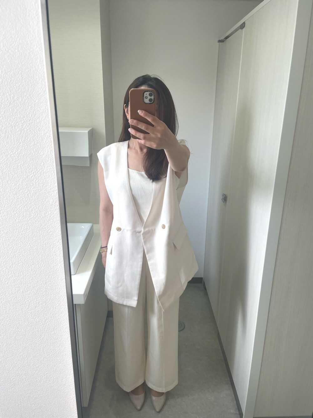 saya.♡のベスト「リネンライクメッシュベスト 494025」を使ったコーディネート