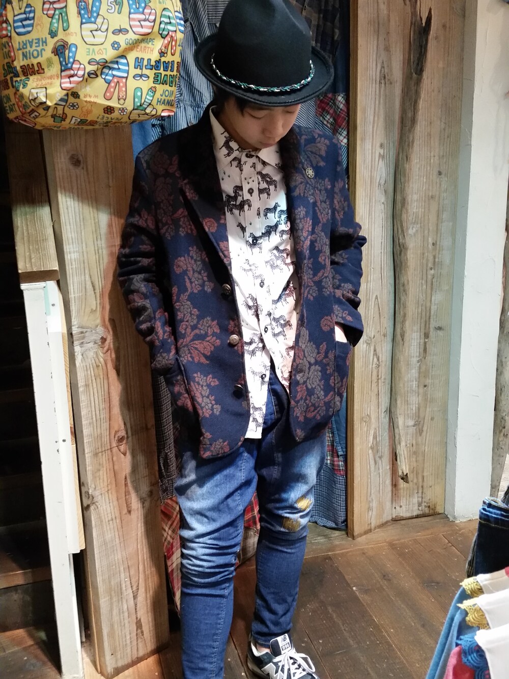ようせいのトップス「メンズサイズロングスリーブシャツ(シマウマ柄)」を使ったコーディネート