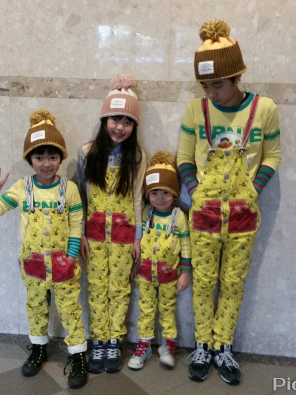 いつも見て頂き、ありがとうございます✨ いとことサロペのオソロコーデ❤ うちの子は、150㎝のサロペが小さく、肩紐をずらして着ています😵 男の子3人は、中のセサミもオソロ❤ すごくかわいい〰❤