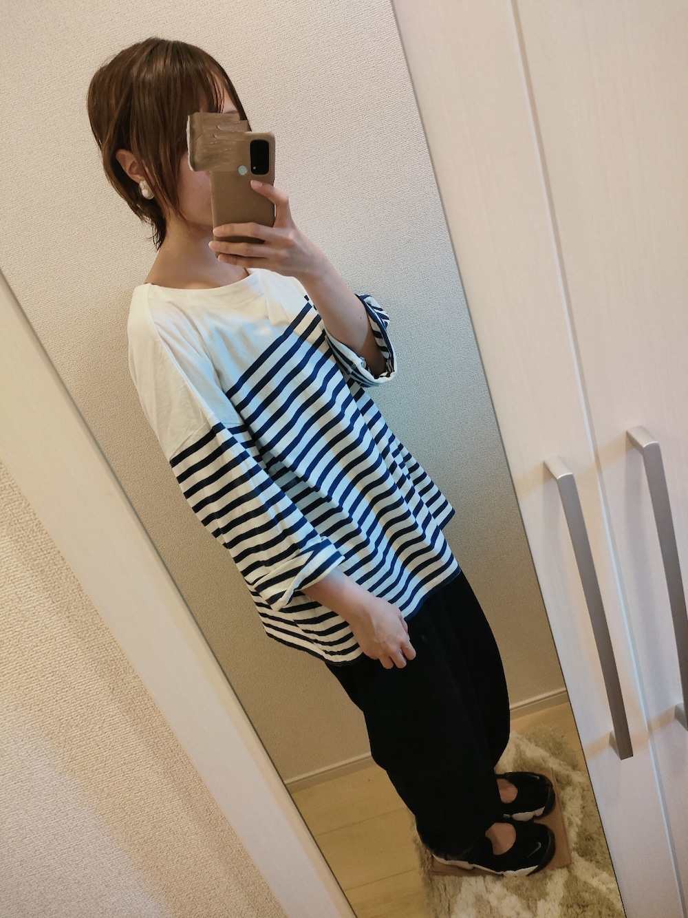 muuuuのTシャツ/カットソー「パネルボーダーバスクカットソー」を使ったコーディネート