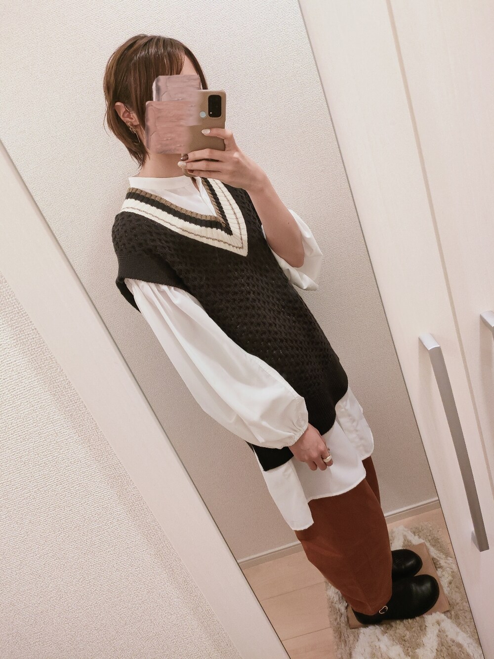 旦那の家族達と、 夕ご飯食べに行った時の𓌉𓇋 𓎩𓌉𓇋 ニットベスト、この時期 体温調節するのに重宝します🧶⋆* イヤリングは 氷の欠片みたいな クリアとオレンジが珍しい🍊