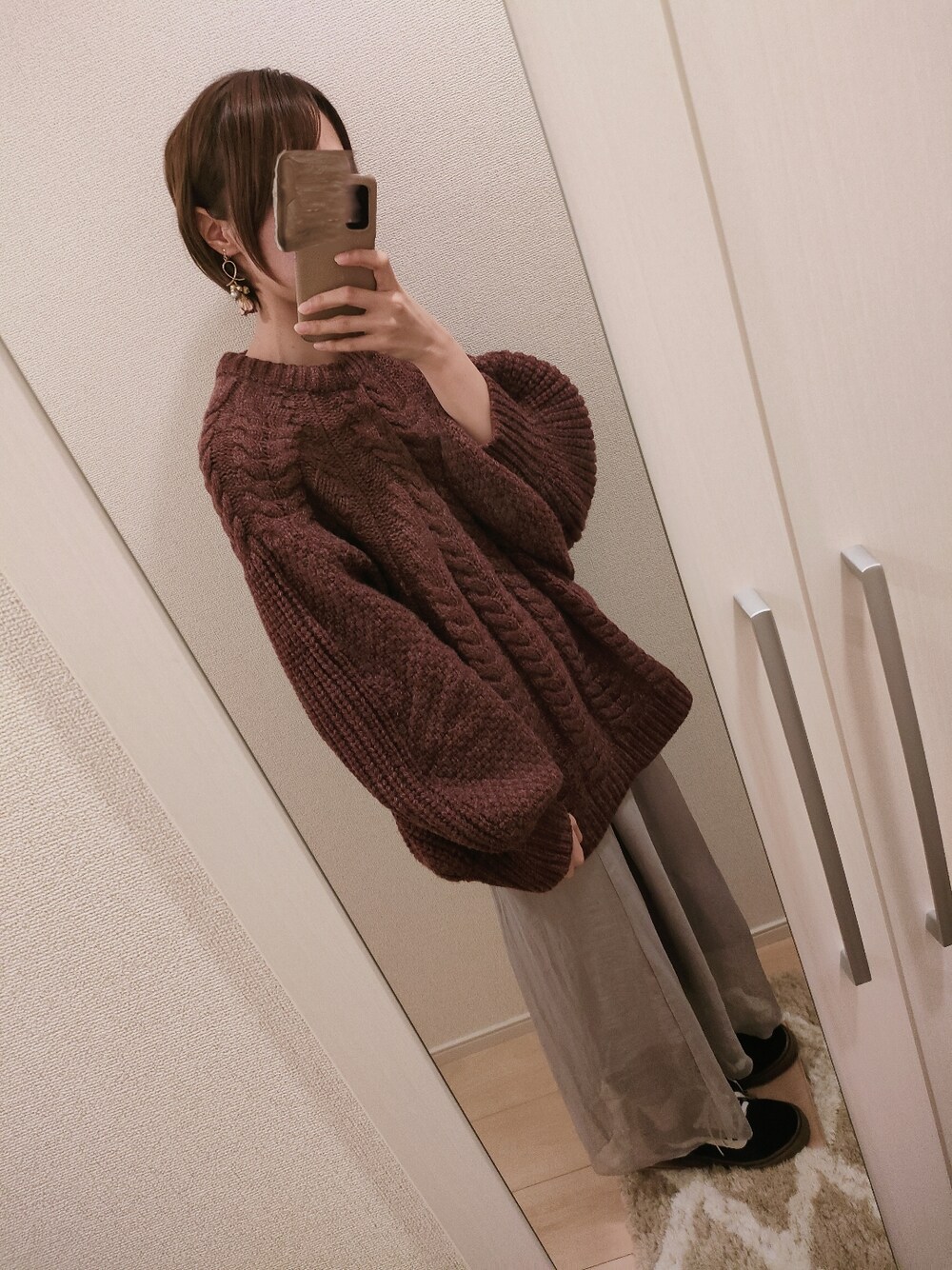 muuuuのニット/セーター「ヘリンボーンドルマンオーバーニット」を使ったコーディネート