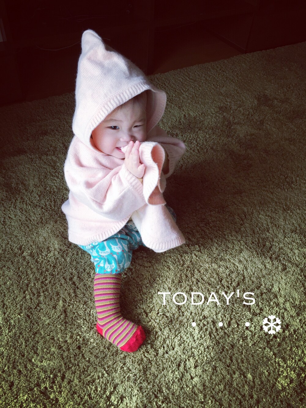 お下がりのポンチョ。 ありがたや。 でもポンチョ、イヤがる。。 最近、ばたばたしています。 年末ですねぇ。 一年早いっ。 今日は雪〜☃さむ〜☃
