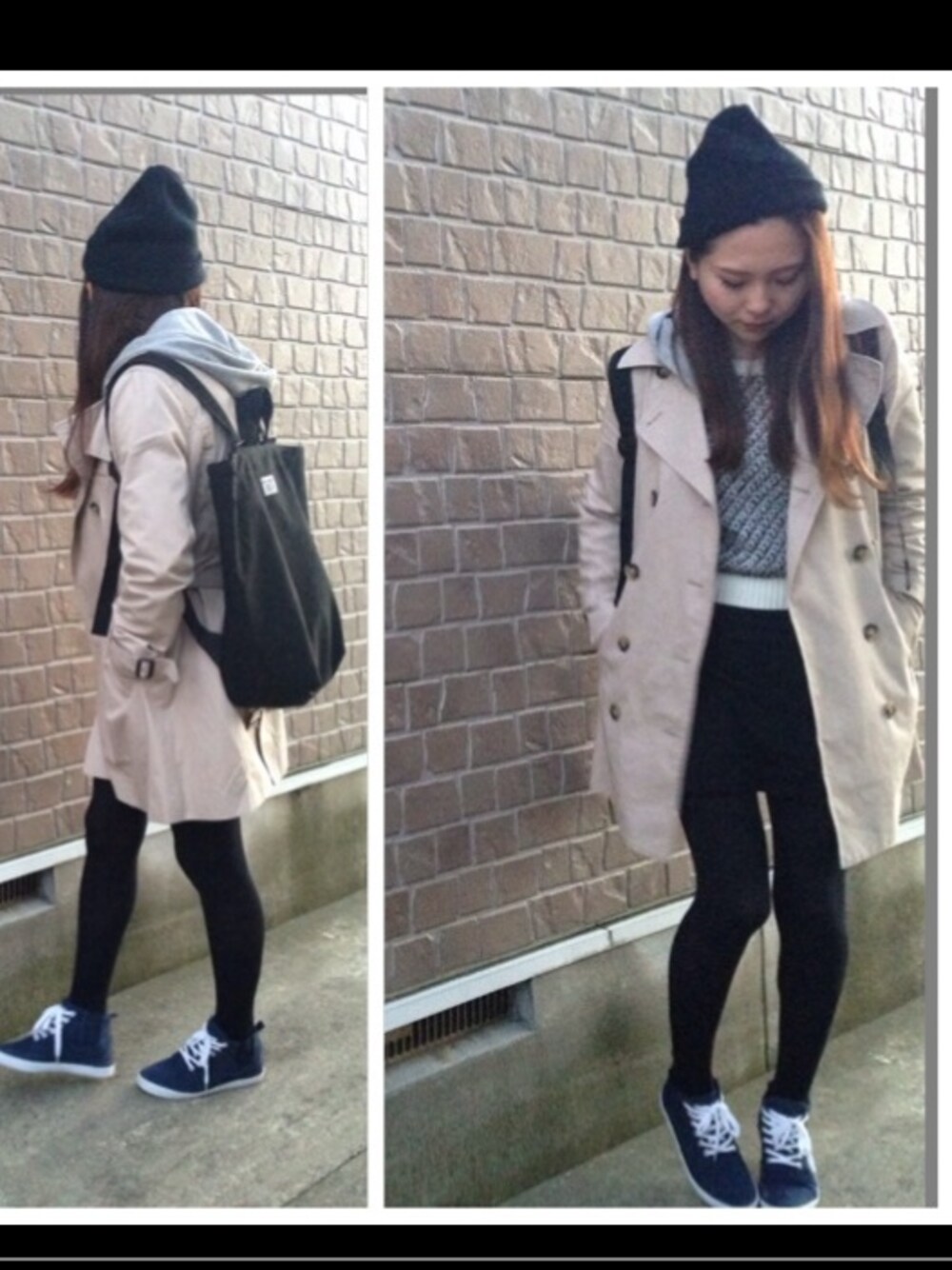 ニット帽:H&M パーカー:UNIQLO スカート:H&M スニーカー:Forever21