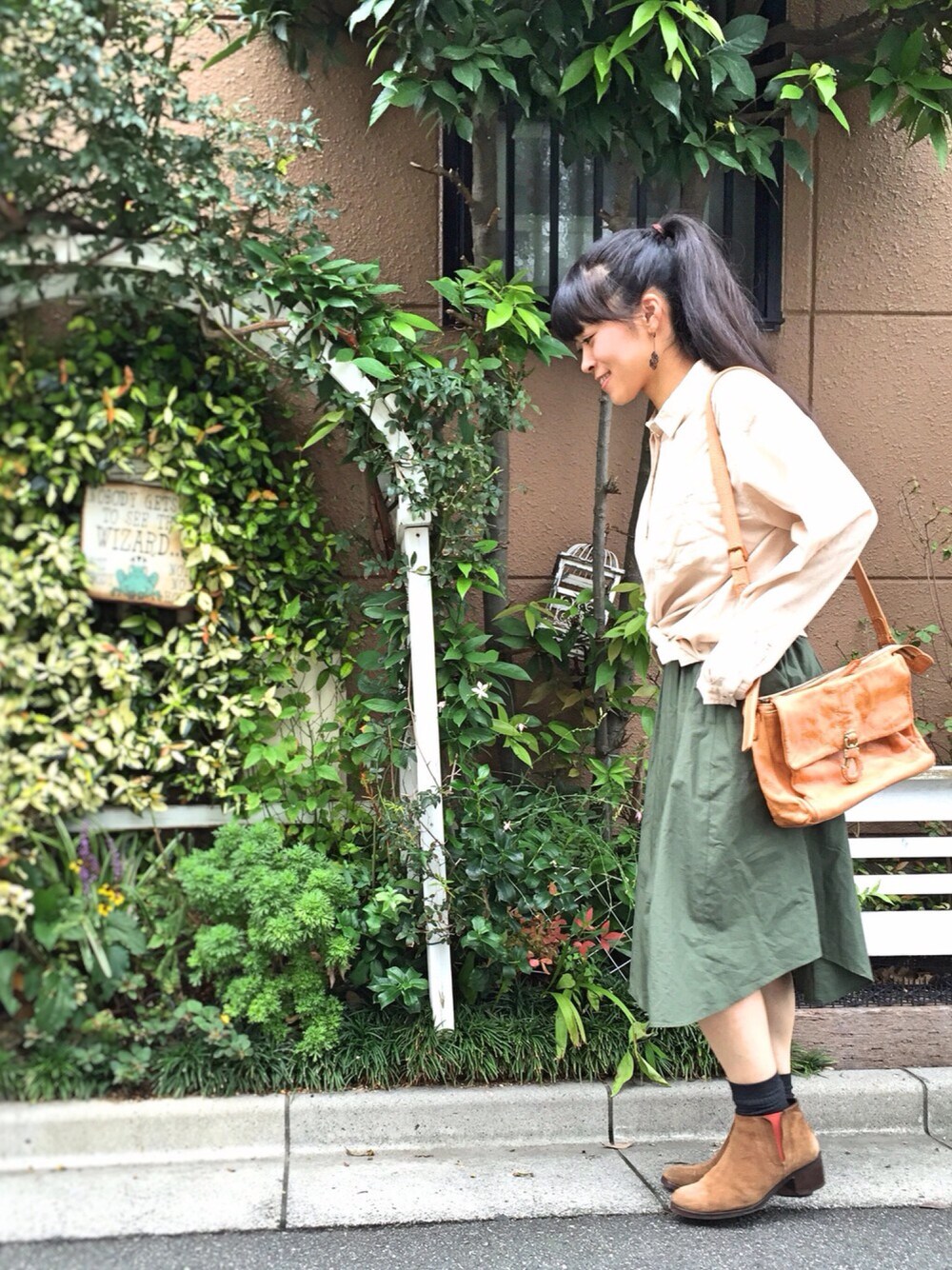 shirt : kusuguru skirt : HANSEL & GRETEL bag : beau dessin shoes : VERO CUOIO pierce : handmade (wood)