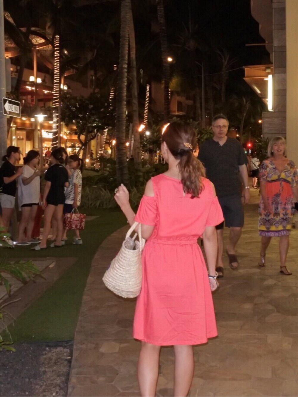 これもハワイにて♡ 街中ぶらぶら この2%tokyoの肩あきワンピはお気に入りすぎる!! かわいいし楽やしお出かけにも使えるし最高。 ちょと派手やけどね。笑
