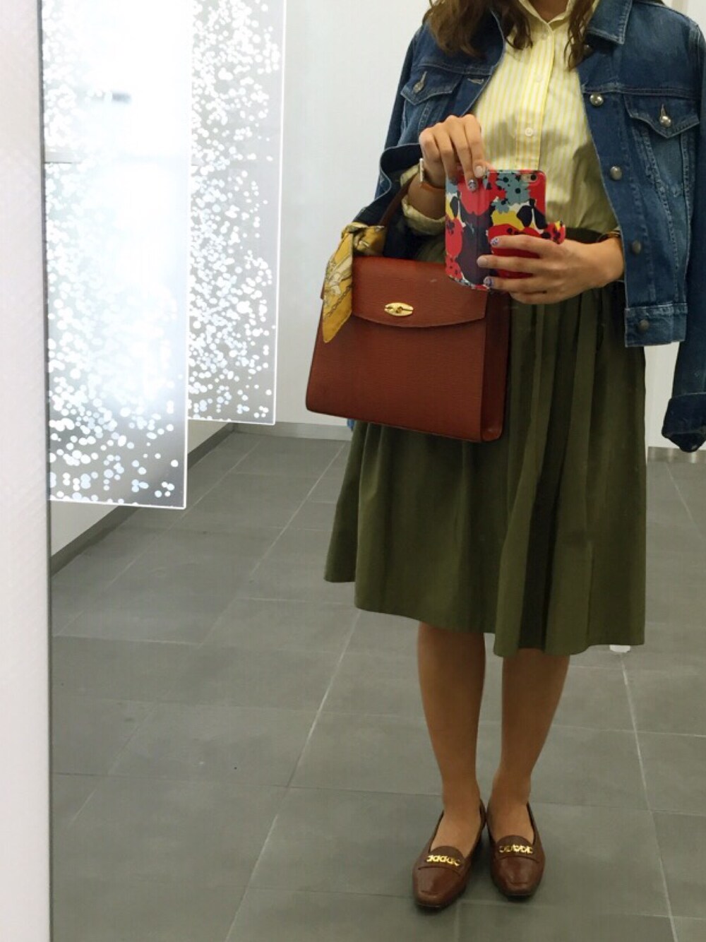 イエロー×カーキの組み合わせって可愛いなあ ストライプシャツもお気に入り。 バッグと靴はおばちゃんからのおさがり♡ ヴィンテージなデザインが可愛すぎる。 ありがとう。
