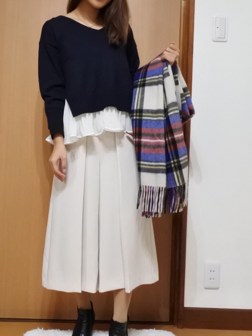 トップスもパンツもZOZOのSALEでげっと! 久々に洋服買って嬉しい! パンツは60%off!トップスは30%off! 嬉しいー。 ストールは去年のSALEで買ったもの。 コートは3年前くらいのもの。 最近いきなり寒すぎる。。
