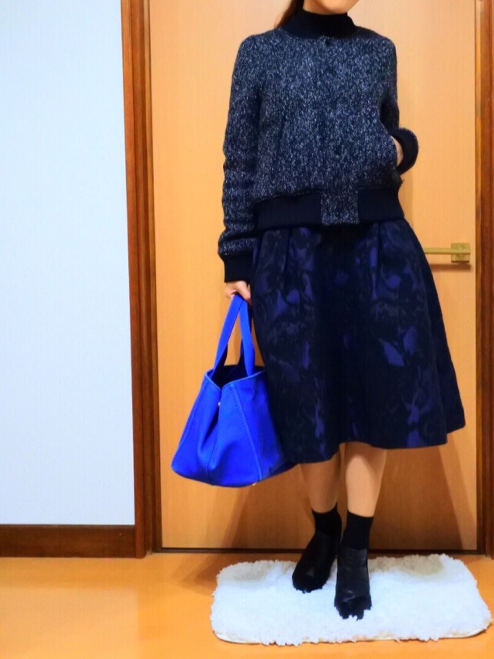 ジャケットは2年前のもの。 スカートは今年H&Mでゲット! ミモレ丈でジャガードでウエストゴムでAラインで、、、 嬉しいこといっぱい詰まっててお気に入り。