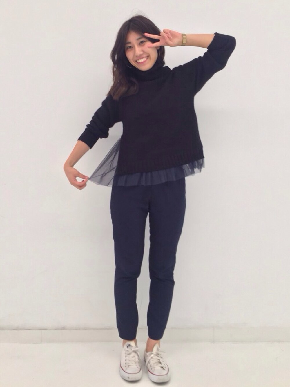 ciccanoのニット/セーター「【高橋愛さんプロデュース】ラブ&ピースプロジェクト 高橋愛さんデザイン すそチュールのタートルニット」を使ったコーディネート