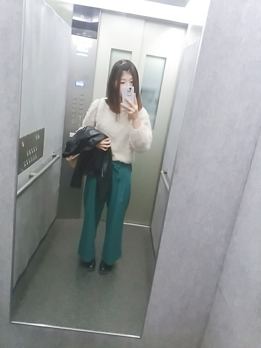 ベージュ系のニット/セーターを着用したレディースの秋コーディネートの1枚目の写真
