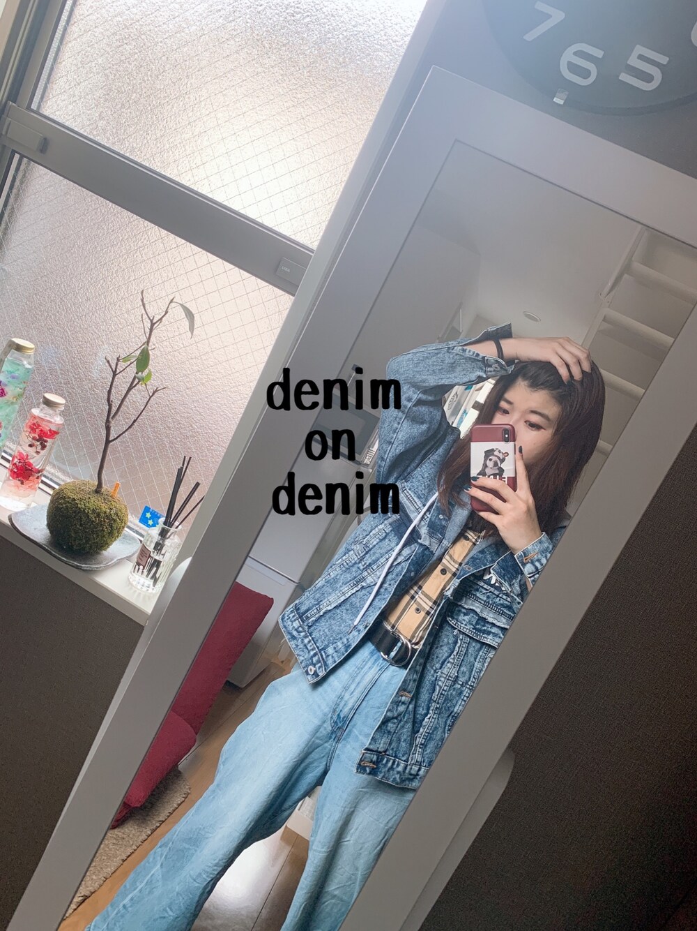 denim on denim かわいすぎてこれで出たかったけど、 暑いて断念。 秋口にやろう、😭