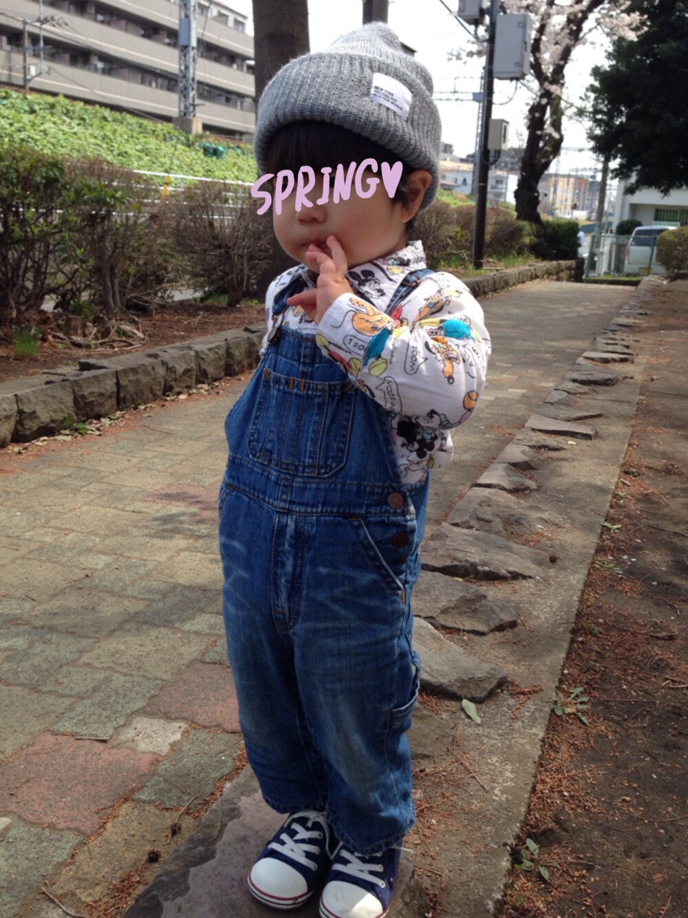 春のはじめコーデ。 よく見るとディズニー柄シャツ♡