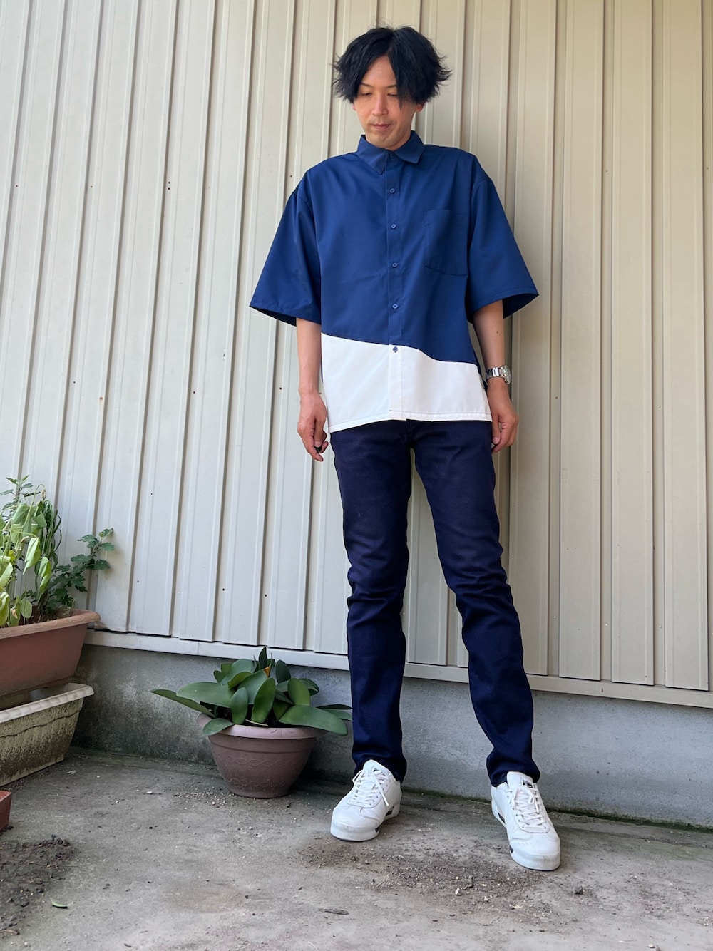 みやびにんのシャツ/ブラウス「BICOLOR LOOSE SHIRTS / バイカラールーズシャツ」を使ったコーディネート