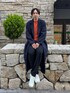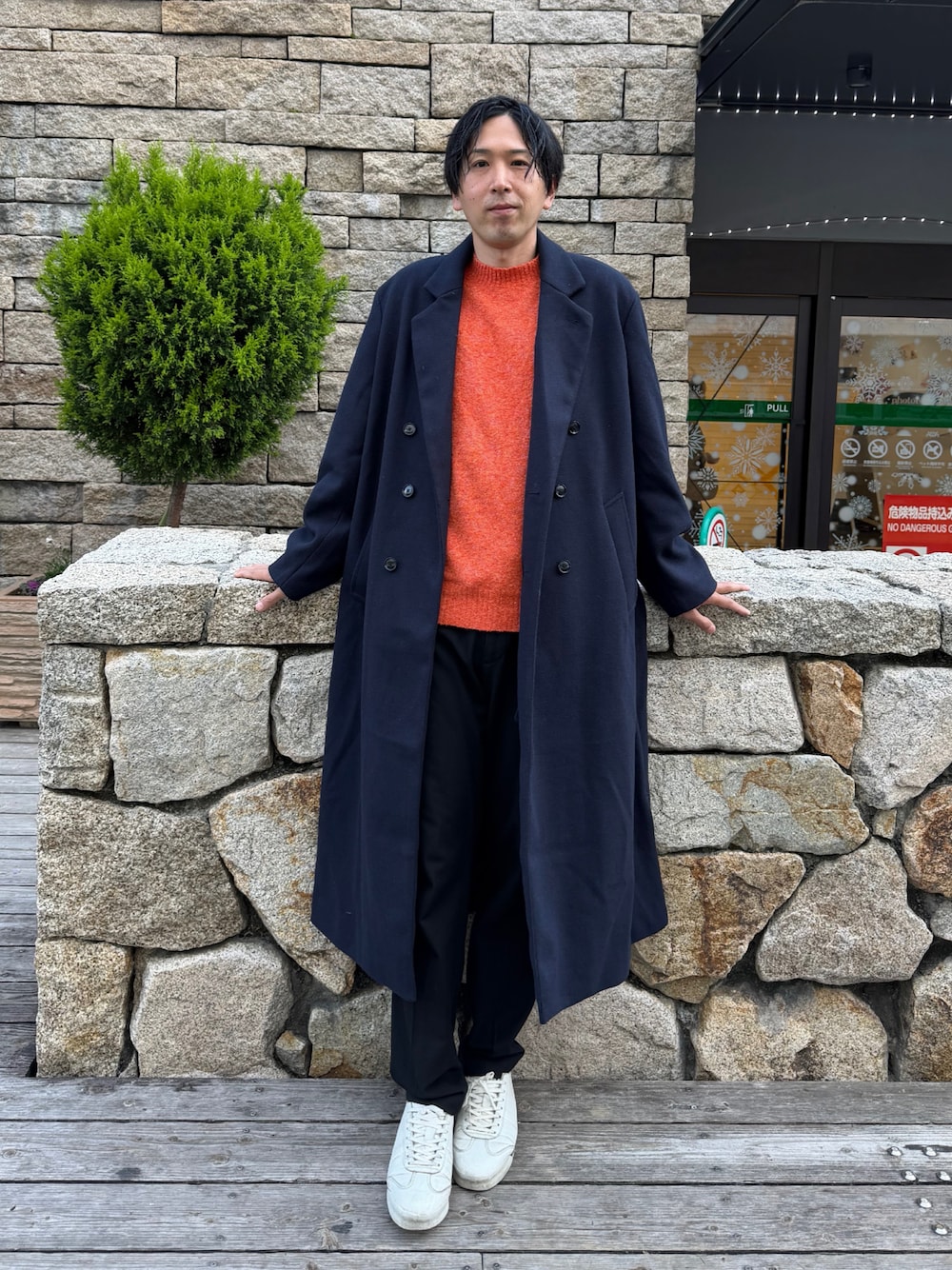 みやびにんのチェスターコート「テックメルトンオーバーロングサイドジップダブルチェスターコート」を使ったコーディネート