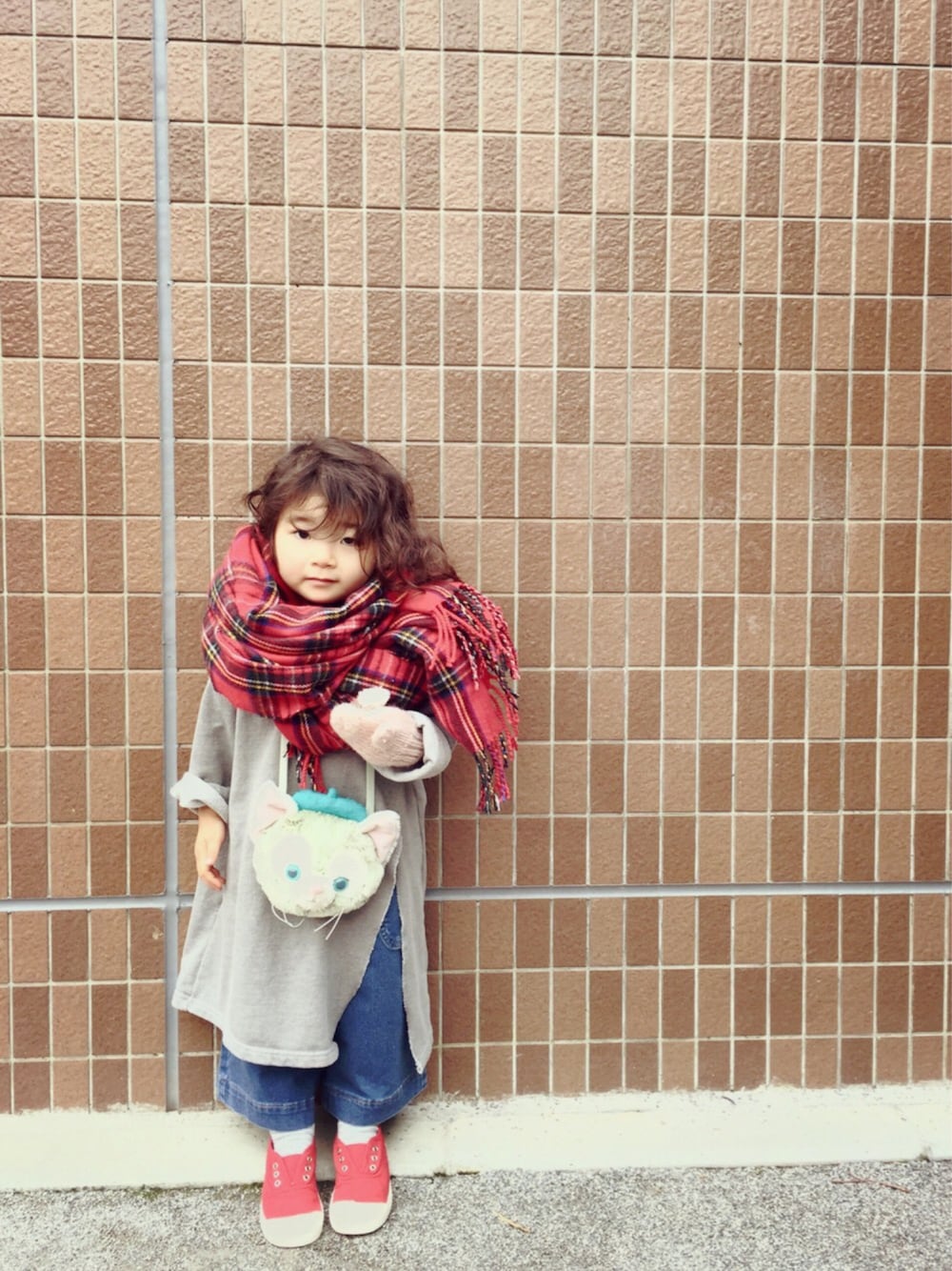 なんか中途半端で面白いからアップ😁 寒いといって母のストール取りました。 手袋は片方だけです。 ジェラトーニはいつも首にかけます。 instagramやってます。 ig → @chebb